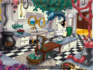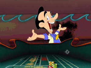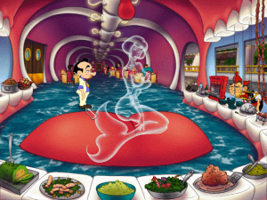 Part of the reason for this is its change in art style. Love for Sail follows the path of King’s Quest VII: The Princeless Bride and The Curse of Monkey Island by utilizing cartoony cel-style animation for all of its characters, completely dropping any pretense of reality. It’s really a shame that the point-and-click genre started to die off as technology was catching up, because this is one of its best looking games. (It also came out before 3D graphics came in and screwed things up. See also: Gabriel Knight 3 and Escape from Monkey Island.) Of course, compared to KQVII, Love for Sail is far more Tex Avery than Walt Disney. The voice acting is terrific, with the actors for Larry and the narrator reprising their roles from the sixth game, and it’s the only Larry installment to feature a fully digitally streamed soundtrack.