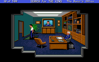 Les Manley so desperately wants to be Leisure Suit Larry. He’s a nerdy loser with a humiliating outfit, a white shirt and a red bow tie. He completely fails with the opposite sex, although his games feature lots of attractive women. He’s an ace computer programmer but life is always kicking him in the groin. His first game, Search for the King, even uses an engine that’s almost functionally identical to Sierra’s SCI0 interpreter. But beyond its obvious inspiration, one which is acknowledged many, many times, Les Manley actually has his own style and sense of humor, which keeps it from becoming too shameless.