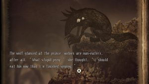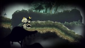 Combat is inconsequential because the wolf is almost invincible, and platforming tends to be awkward since most of the game is spent dragging the prince along. This is rarely an actual problem, since platforming also isn’t really the focus, but there are a few occasions where you’re trying to jump on mushrooms, which softens falls and allows you to survive, but one of your character misses and ends up getting themselves killed. There are a few instances the Prince and Princess are split up and you need to coax him from a distance across obstacles, which is a little annoying since he takes a second or two to react.