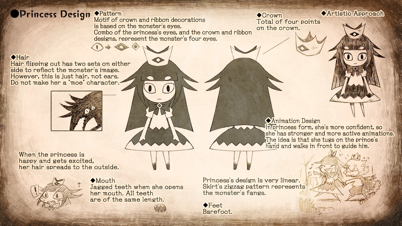 Nippon Ichi’s The Liar Princess and the Blind Prince is sort of similar to Nippon Ichi’s 2013 Vita/Windows game htoL#NiQ: The Firefly Diary, in that it’s a side-scrolling puzzle-platformer with beautifully drawn character sprites. While that game leaned towards subtle horror, The Liar Princess and the Blind Prince draws its atmosphere from dark fairy tales of yore. The game was the result of an internal game pitch contest within Nippon Ichi, where web designer Sayaka Oda supplied the concept as well as all of the illustrations and character artwork.