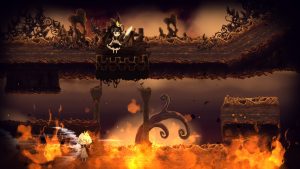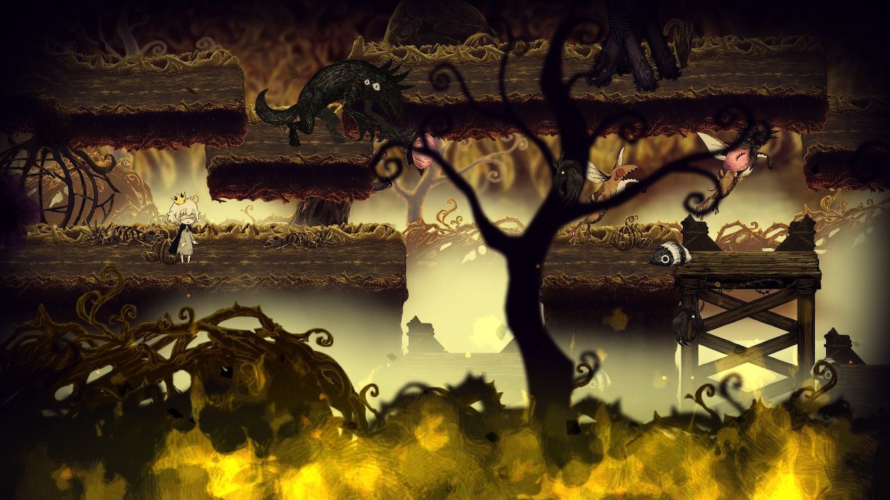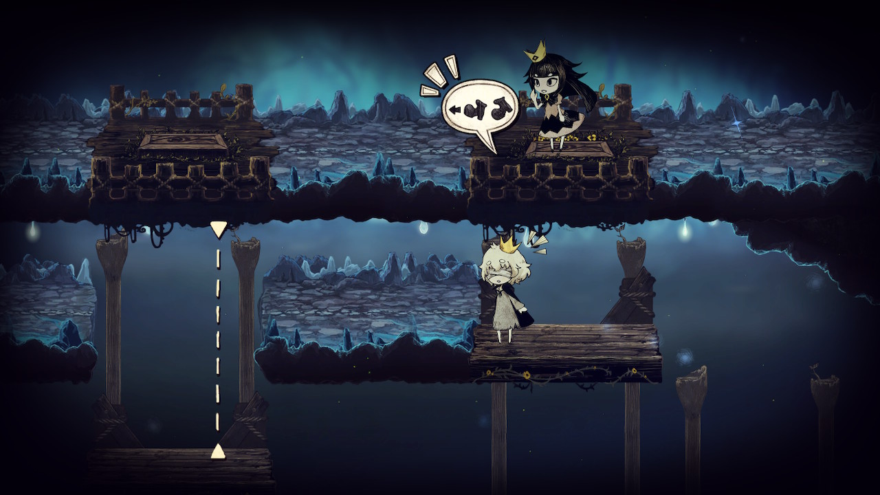 However, the game still thrives in no small part thanks to its ridiculously charming character design and animation. Both the Princess and Prince are immediately appealing, drawn in pencil-like sketches, with great emotions told in just the smallest touches. When separate, their faces are in a neutral, slightly frowny expression, but join hands and they both put on the tiniest of smiles. When transforming out of her wolf form, the Princess can briefly be seen holding her head in pain, a reminder of the cursed spell that gave her ability in the first place. If the Prince dies, she falls to her knees and cries, before the screen fades out and the level reloads.