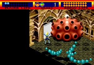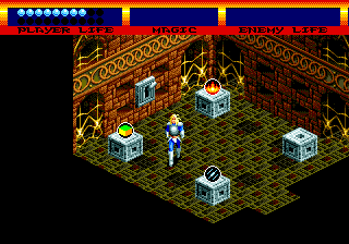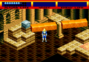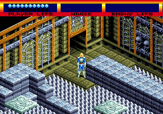 Light Crusader is a dungeon exploration/spatial puzzle game along the lines of the Landstalker series by Climax. The aforementioned Landstalker is thought to be its greatest inspiration, but rather than plucking a whimsical realm from HAN’s Treasure-land for the game’s setting, the development team chose to frame it in a grittier motif that would be more at home on the Amiga or IBM PC. It has a very European Fantasy/Dungeons & Dragons feel as opposed to something like Akira Toriyama’s Dragon Quest designs, and lamentably, it doesn’t quite work. Rather than being anime-tinged like Capcom’s Dungeons & Dragons arcade games, or even Vallejo-esque, the art is disappointingly amateurish.