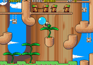 The story shares a lot with Taito’s previous arcade platformer, The NewZealand Story, right down to the caged animals that are rescued at the end of each stage. The connections go deeper than the plot, as this game also shares the enemies’ habit to pour out of portals that pop out of nowhere, as well as secret warps can be found by hitting particular spaces with the weapon. These details and others, like the games sharing the same interface font, has brought many to consider Liquid Kids a spiritual successor to The NewZealand Story, which never received a real sequel (the subpar Nintendo DS remake can be ignored).