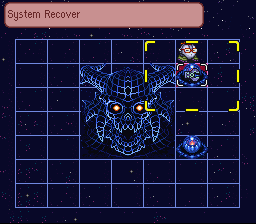 Unifying the game’s chapters is Live-A-Live‘s distinctive battle system, which is almost like a turn-based strategy game along the lines of Final Fantasy Tactics or Treasure Hunter G. Confined as it is to a 7×7 grid, at its best it almost comes across as something like a game of chess. Each character’s attack can be wildly different in the areas of the grid it can target, and the same goes for the enemies, meaning that success is sometimes a matter of carefully positioning one’s characters so they can strike most effectively while still being able to avoid an enemy’s stronger attacks. Navigating the menus at each turn can be a bit bothersome, but you can easily bring up the last-executed attack by pressing X.