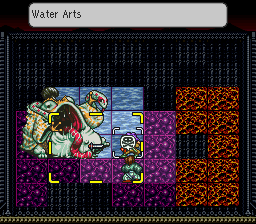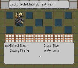 Alas, it doesn’t quite work as well in practice. Rather than bogging the player down with statistics about charge times and movement limits, most of the mechanics of the battle system are completely hidden from the player. For instance, you might want to move your characters out of the way once they get hit, but you have no way of knowing how far they’ll be able to move before an enemy can attack again. Charge times (that is, the amount of other battlefield actions that might take place between when an attack is selected and when it is actually executed) also vary widely, to the point where you might even find the action of bringing up an attack menu to be interrupted by one of your other character’s attacks. Fortunately, the difficulty of the battles is rarely so harsh (particularly since you’re automatically healed after each battle) that you’ll find yourself frustrated by minutiae of the mechanics.