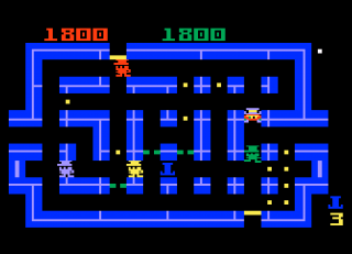 The 2600 version visually bears little to no resemblance to the original, with the cops replaced with creepy, Berserk-esque stick men. The maze has also been simplified, which means it’s more difficult to tell where you can place gates, and the automatic gates aren’t a part of this version, either. It’s not an awful game on its own merits, but so much is missing that it feels like an entirely different game. The Intellivision is far more representative of the actual game, and is about as close to the original as the hardware can get, aside from a slightly smaller maze. The Apple II version is somewhere between the 2600 and Intellivision in terms of graphical and sound capabilities, but generally plays pretty smoothly, if you can deal with a slightly smaller maze and some odd keyboard controls.