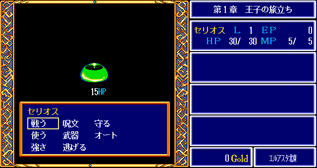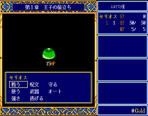 Initially released for the PC88, PC99 and MSX home computers, it was undoubtedly meant to satiate the hunger of role players who, for some reason, didn't have a Famicom or Super Famicom. As a result, it loses a bit of luster when compared to various other console RPGs.