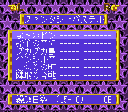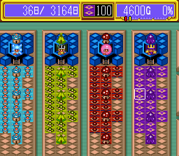 The first console release was on the Super Famicom, courtesy of Epoch. While it’s playable with a controller, it works much better with the mouse. The graphics take a hit, due to the low resolution of the system, though the zoom function does use some cool Mode 7 scaling effects. It’s a little sluggish too, as the fastest speed is still fairly slow. There are a few extra themes exclusive to this version, including youkai, animals, and demons. Unlike the PC versions, you can only save between maps, not during them.