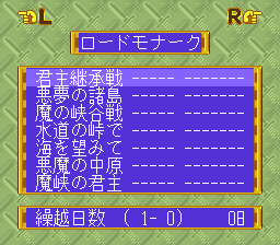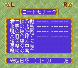 The Mega Drive version is called Lord Monarch: Tokoton Sentou Densetsu (“Complete Battle Legend”). It was produced by Sega-Falcom, the joint venture that also brought Popful Mail and Sorcerian to Sega platforms. The visuals have been given a complete overhaul, with colorful characters, and it both looks and sounds like the Shining Force games, another popular strategy game series on Sega’s 16-bit platform. It was actually developed by Omiya Soft (Front Mission Gun Hazard, Culdcept), with music arranged by Masaki Tanimoto, who typically worked with music studio Two Five. It included maps from both of the original and Advanced versions, plus a unique story mode with 32 more maps with different goals and new characters.