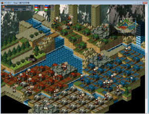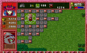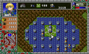 The PlayStation port, released in 1998, is subtitled Shin Gaia Oukokuki (“New Gaia Kingdom Chronicle”), and was published by Toshiba EMI. Like the Mega Drive version, it also has its own unique story mode with different characters. While the visuals are technically more advanced than the 16-bit ports, they lack the charm of the Mega Drive port. It’s based on the original game but has 100 totally new maps, including some fanmade ones. It also includes a story mode similar to the one found in the Mega Drive game, though the actual plot and characters are entirely different. It includes four leaders with their own scenarios.