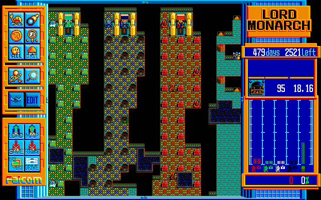 Dune 2, released in 1992 by Westwood Studios, is largely credited as being the progenitor of the real-time strategy genre. Of course it wasn’t actually the first, as it merely codified certain conventions that were used in later titles, and there are a fair number of games that precede it. One of these is Falcom’s Lord Monarch, released in 1991. Many aspects will be familiar to real time strategy game fans, but it plays very differently from the descendants of Westwood’s classic. Lord Monarch is technically part of Falcom’s Dragon Slayer series, the seventh entry to be precise. It wasn’t actually advertised as such on the box though, and it’s nothing like any of the other Dragon Slayer games, because (A) it’s not an RPG, and (B) there are barely any dragons in it. Like all of the other games in this grouping, it was designed and programmed by Yoshio Kiya.
