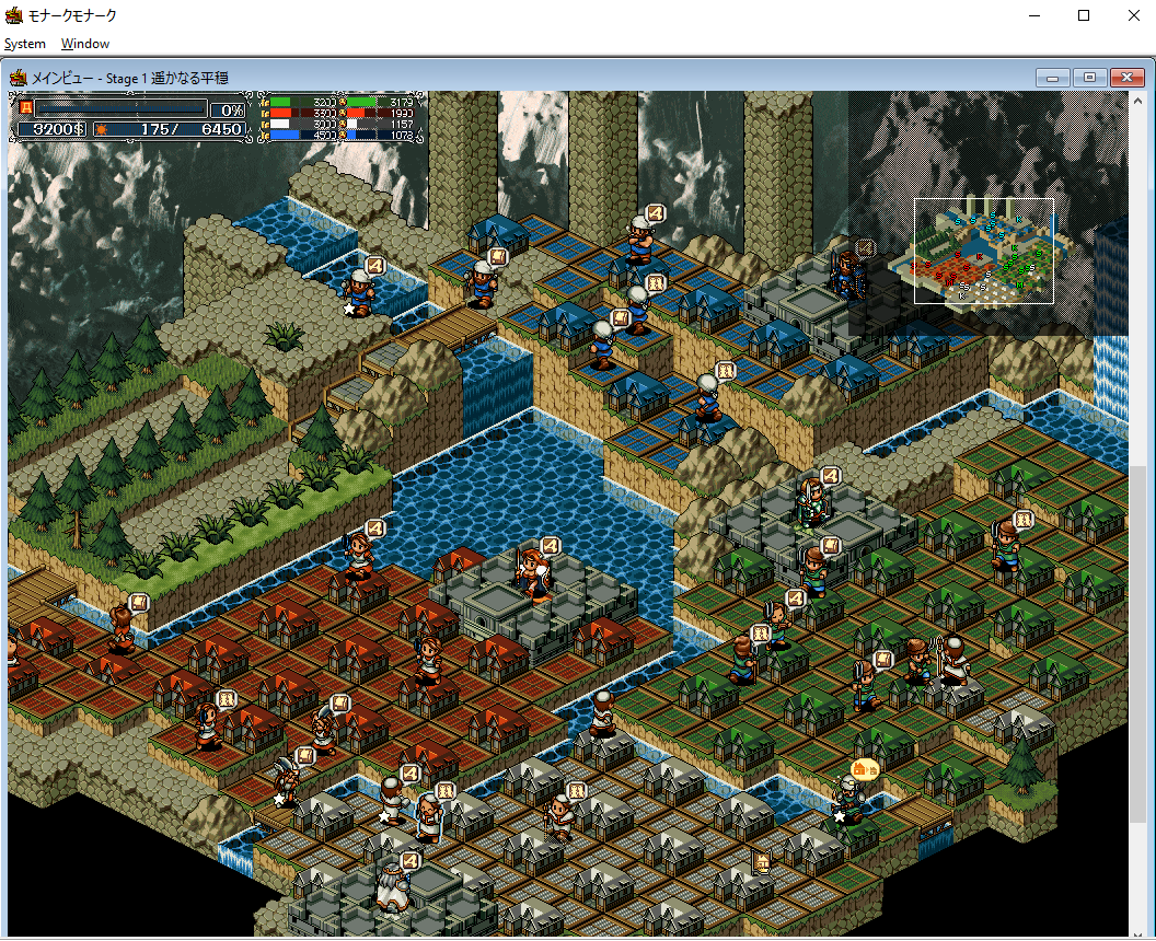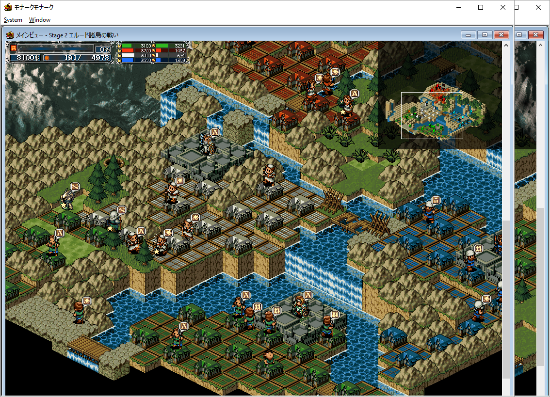 Lord Monarch was also brought to Windows platforms starting in 1996, initially developed to work on Windows 95. Though there are many releases with different names, they’re all pretty similar, and all geared towards expanding the audience of the series. Many of the graphics have been carried over from the FM Towns version, though due to the higher resolution, it can zoom out much farther. It’s also been designed to work with the Windows user interface, so you can view, reposition, and resize any of the various status or map windows to your liking. It supports both MIDI and redbook audio, plus it adds cute little voices for the characters when you click on them. It’s still a little clumsy compared to contemporary RTS games, but it’s a marked step up from the PC98/FM Towns versions.