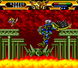 Lords of Thunder transcends the shooter stereotype, eschewing the usual space ships and sci-fi environments for a heavy metal fantasy-style setting in the realm of Mistral. It follows the adventure of a god-knight named Landis (Randy in the Japanese version, Duran in the Sega CD version). An evil dude named Sornbul and his six minions have torn the world asunder and are attempting to resurrect the dark god Zaggart (Deoric in the Sega CD version). While this would give reason for most god-knights to set off on an RPG-style adventure, Landis is a man who knows time is money and rightfully flies off to seven stages of shooting action.