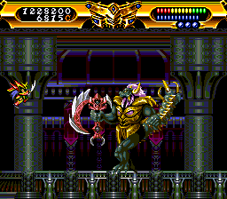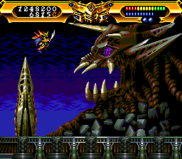 Graphically, Lords of Thunder is fantastic. The game is very colorful, with minimal slowdown even in the most extreme sequences. Some of the enemies are quite large too, especially the bosses. The enemies themselves range in design from classic fantasy adversaries like wizards and water dragons to more bizarre things like flying tortoise carriers and an evil jaw totally bereft of a face. The game also has some impressive animated cutscenes, but they take a backseat to the game’s most impressive aspect – its sound.