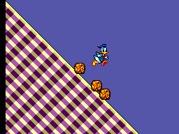 While Castle of Illusion was a fantastic game, Lucky Dime Caper feels a bit off in several ways in comparison. Donald moves so agonizingly slow, and his jump is one of the very worst in Sega platformers. It seems like he is jumping with stones in his pants pockets, and the guy doesn’t even wear pants. You can never get the right momentum, and to make matters worse, Donald slides a lot when landing so you’re sure to hit an enemy or two. The hit frame on the enemies is also extremely narrow, leading to many jumps that seems like it should have killed the enemy, but for some reason does not register. Especially in later stages, where you have to navigate through small ledges with enemies on them and projectiles from all angles, you are bound to take after Donald and flip the rage switch.