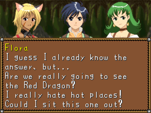 From a plot standpoint, it’s basically a simplified retread of Silver Star Story – anyone familiar with it (the target audience for this title, obviously) will spot the obvious plot beats, including Lucia being the human reincarnation of Althena (though curiously having nothing to do with Lucia from Eternal Blue, despite sharing the same name), as well as the second half of the game involving fighting the four dragons in order for the hero to become the Dragonmaster.