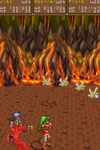 The list goes on. During battle, your characters mostly stay in the foreground, but they’re drawn at a lower resolution, causing them to be scaled unevenly and pixelated. Towns were apparently too difficult to design, so they’ve been reduced to a single map screen in which you move around with a cursor. The music is, relatively speaking, probably the strongest part of the game, because it’s not really awful, but it’s still mostly forgettable. Series composer mainstay Noriyuki Iwadare is nowhere to be found.