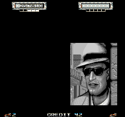 The answer to the nature of its distribution may be in the game itself. During the Desert level, players will pass by several billboards in the background advertising various made up goods and services. Among them however, we can see the hand of Data East via a billboard advertising RoboCop 2! Mitchell and Data East have collaborated and shared talent a few times over the years on games like Funky Jet (1991), and a 1989 release would have put it right in between Data East’s arcade adaptations of RoboCop (Fall 1988) and RoboCop 2 (Spring 1991).