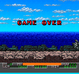 One unfortunate similarity this game has to Keith Courage‘s robot levels is that while the enemies are colorful, there’s very little variety between them. The SuperGrafx’s small library in general failed to impress because they were all made with the mindset of having a strong visual presentation first and foremost, but that presentation is barely an improvement over the best PC Engine games, and no CD games were made to take advantage of the system’s expanded capabilities. SuperGrafx games prices were also ridiculous for the minor improvement, often approaching $110 per game when they were new.
