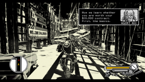 The story segments are a completely different thing from the game proper. These play when Jack isn’t on camera, leaving him to his thoughts and conversations with Naomi, commenting on the perverse spectacle of the games. The music is almost nonexistent, and the atmosphere is thick and oppressive. The sheer horror of the game’s scenario really starts to sink in, and the fun times stop for a few minutes in sobering moments of humanity and despair. It seems like the game is building up a rather average story where a scorned father or detective is getting revenge on crime and evil and blah blah blah, but it swerves in a radically different direction towards the end. It all comes back down to who Jack is and what he’s doing here, and the game’s ending is filled to the brim with unexpected revelations that completely paint the game you just played in a coat of loathing and disgust. And it’s brilliant.