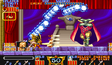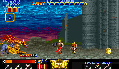 Due to the popularity of RPGs like Dragon Quest, a number of Japanese arcade games experimented with melding role-playing elements with action games. Capcom’s initial attempt at this was 1987’s Black Tiger, which was followed up three years later by Magic Sword. This game isn’t really a sequel so much as an evolution on its concepts, which replaced Black Tiger‘s exploratory platforming for more straightforward hack-and-slashery, while also rethinking what numbers and statistics mean when applied to a fast paced action arcade game. The result is one of Capcom’s best titles of the early 90s, even though it’s largely overshadowed by its bigger name franchises.