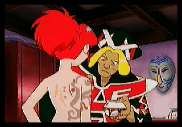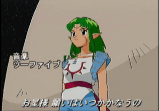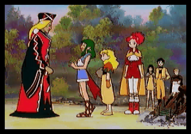 The visuals are done in the style of the other 32-bit Lunar ports. It’s not entirely the same since they use more realistically-proportioned sprites as opposed to the super deformed ones of the other games, but they still look similar. What is odd is that the battle scenes use a different set of sprites than the field, and they look markedly worse. There’s an opening video with a vocal theme, and plenty of anime scenes peppered throughout. They are somewhat hampered by the Saturn though, with the video having a noticeable border and suffering from heavy compression artifacts – unlike the other Lunar ports, there was never any support for the MPEG card or PlayStation ports to clean them up. There’s also some computer generated graphics in the later sections, depicting the island and castle, which look painfully dated. The music is provided by Noriyuki Iwadare once again, and maintains both the playful town themes and powerful battles themes of his previous works. Some of the tracks are redbook too, so these actually sounds better than the Saturn/PS1 ports.