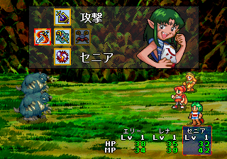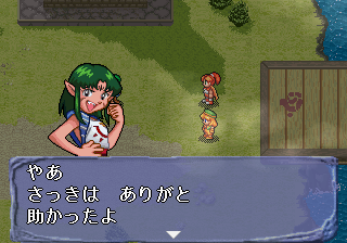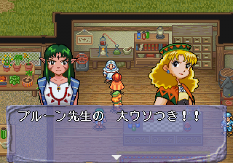 The game uses the same twelve chapter structure, but with a few exceptions, what actually happens in those chapters is almost completely different. The Game Gear version began with a trial, as the students were met with an empty island and needed to figure out how to survive. The Saturn version skips over that completely and starts with the gang trying to match their talents and find a suitable professor. The villains are introduced much, much earlier – Memphis appears in early cutscenes, and Barua is introduced in the second chapter, where previously she didn’t show up until about the eighth, the same time when Wing is introduced. The Game Gear version features a chapter where the island docks with a town called Shell; the Saturn version has a chapter focusing on a mysterious mist and a ghost ship, and another one about visiting a town of merfolk. In one of the middle chapters of the Game Gear version, Senia’s boyfriend shows up, and then she leaves with him, never to return. In the Saturn version, she returns a little bit later, and even her husband joins the party. A new character, Blade, also shows up in the fourth chapter, giving another personality to bounce off the main girls, as well as providing someone who isn’t useless with physical attacks. The script is, of course, entirely rewritten and greatly expanded, which is a huge benefit, considering much of the game is simply spent running around the school and talking to the various instructors and classmates.