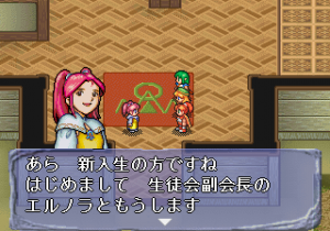 As the school year goes on, eventually they have to contend with two villains, who have their own floating island that houses a castle called “D”. The game is divided into twelve chapters, most just focusing on small vignettes around the school, slowly revealing the bad guys and then the hero’s attempts to stop them. There’s no real connection to the main Lunar games, though it obviously takes place in the same world – Ien is similar to Vane from those games (though not as big or prestigious), and it makes references to the Vile Tribe and other familiar names. At one point, Ellie is even mistaken for the reincarnation of Althena, which gets her in trouble.