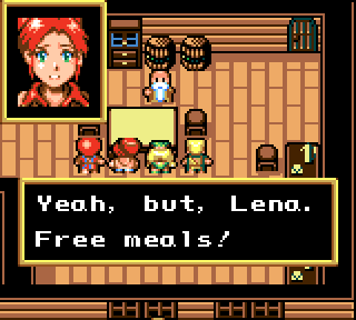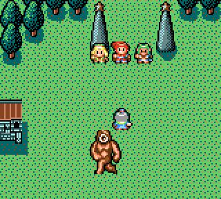 A young boy (and only male party member in the Game Gear version) who shows up for the second half of the game. He’s shy and has a crush on Ellie, though he can’t really admit it.