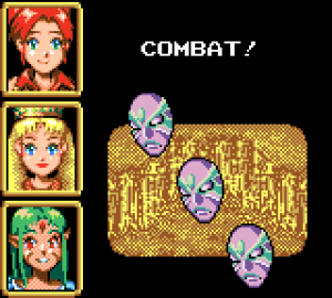 Outwardly, the Game Gear release resembles Dragon Quest, complete with squat sprites, random battles, and a fairly standard first person battle system. As expected given the setting, combat places a greater emphasis on magic than the main Lunar games, with many enemies having particular elemental weaknesses, and each of the characters have attacks to exploit them. As usual with JRPGs, magic power is limited, but there are restorative health items, and a number of robes that will regenerate MP as you walk around. Magic is obtained by speaking to certain instructors once you’ve reached high enough levels.