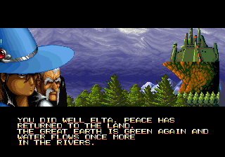 The plot is typical of a fantasy action setting: Elta, one of the last magician lords, must take on the unholy army of dark wizard Gal Agiese. Gal intends to revive the god of destruction, Az Atorse, using eight mystical tomes of power. As Elta, you must collect these eight tomes and send Gal and Az back into the dark void from whence they came. Expectedly, the setting comes with the territory of any good dark medieval setting: Fields, caves, castles, aqueducts, and bizarre alien architecture that may or may not be alive.