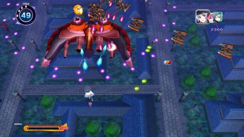 Each of character wields their own element, with unique rapid firing patterns and familiars that supplement their attacks – Mamoru has the power of lighting, kimono-clad schoolgirl Mayuno uses snow, tough guy Narai has wind attacks, high school girl Beniko wields fox fire, and Fululu has the power of flower. The character selection screen offers suggestions to which characters are best for novices or experts. By holding down the fire button, you can also lock your shots while moving in different directions.