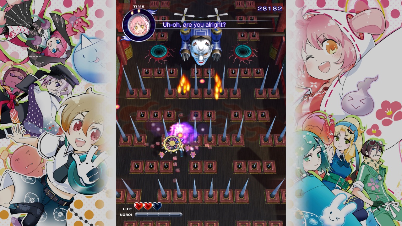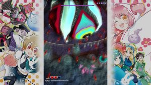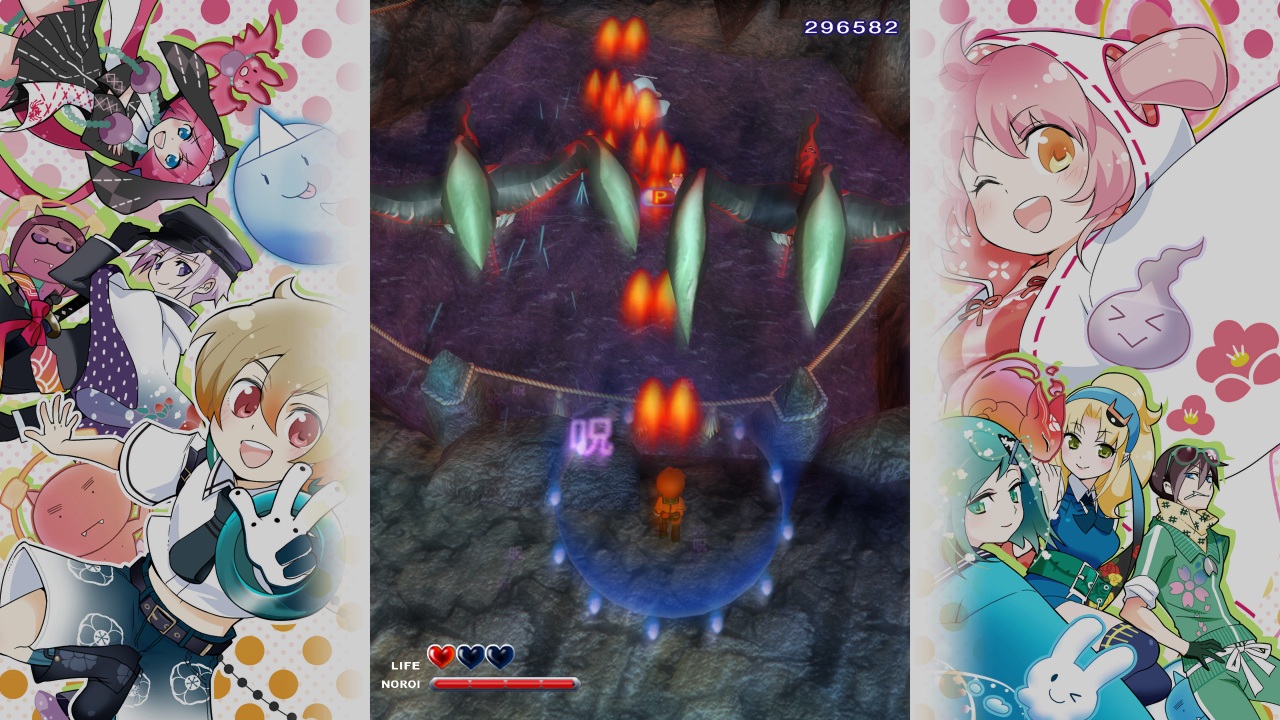 Mamorukun Curse! was first released in Japanese arcade in 2008, with an Xbox 360 port following shortly thereafter, which benefits from HD visuals. This also adds Fululu as a standard playable character (she’s a hidden character in the arcade game) and adds two DLC members to the cast – demonic nun Nowa, who wields the power of the night, and partners Narukami Lukino and Karel Werfel, as a crossover cameo from Senko no Ronde. There are also alternate costumes for all of the characters. This release also adds a Story mode featuring comic book-style panels and dialogue between the five main characters, as well as a unique structure. Rather than featuring a standard lives system, when you die, you cycle to the next character, and picking up health restoratives or gaining enough candy items revives a fallen hero. The timer is gone here, too. While you can play through the stages normally, this won’t lead to the best ending; instead, each stage has certain enemies you need to destroy, plus you need to kill each level boss with specific characters. Obviously this is a problem if that character is dead, but the game saves after each stage, so you can always just reload the game if you need to give it another shot. There also aren’t any real clues as to your goals here, so reading a FAQ is highly recommended.