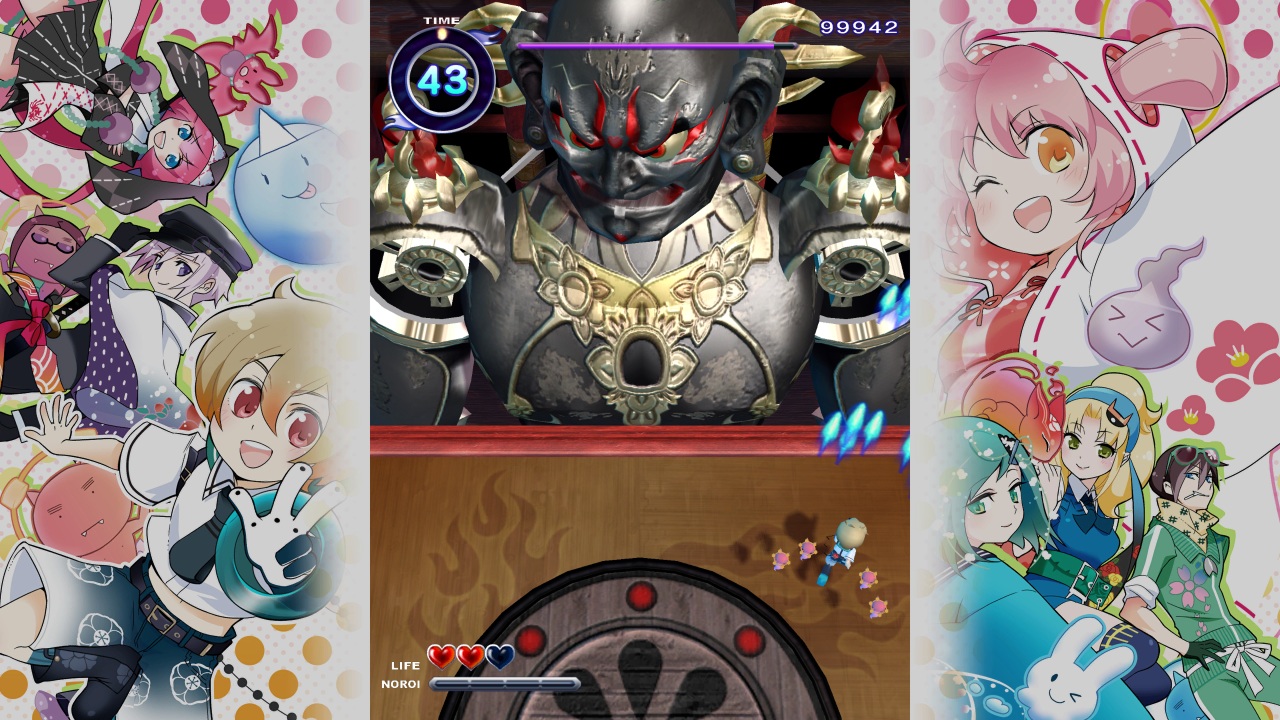 Mamoru is just an ordinary schoolboy, who seemingly perishes in an accident. When he wakes up, he’s accosted by the kooky shrine maiden Fululu, who’s assembled three other souls and tasked the squad with saving the underworld from invading forces. Developed by G.rev (Border Down, Under Defeat) and Gulti (Raiden Fighters Aces), Mamorukun Curse! can be seen as the spiritual successor to Taito’s Pocky and Rocky, as they both feature cutesy characters and Japanese mythology, mixed with overhead run-and-gun gameplay. This is appropriate considering that G.Rev was founded by ex-Taito members. The Japanese title translates to “Mamoru-kun Has Been Cursed!”, but the English title shortens it.