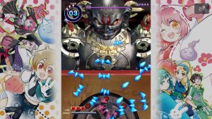 The game was then ported to the PlayStation 3, now subtitled Meikai Katsugeki Wide-ban (“Underworld Action Wide Version”). While given a physical release in Japan, it was also released internationally as a downloadable game, with an English translation. This includes everything from the Xbox 360 port, along with the two DLC characters included as standard. New to this mode are Challenges Course which features several different level configurations and preset character rosters. This also changes the vertical orientation to a 16:9 widescreen presentation. The HD port of Under Defeat also featured a similar widescreen mode, which was nearly unplayable due to the cramped screen vertically scrolling screen. But Mamorukun already let you move and scroll in all directions (except backwards), and the screen isn’t zoomed in too much, so the action still feels natural.