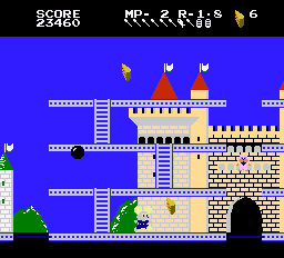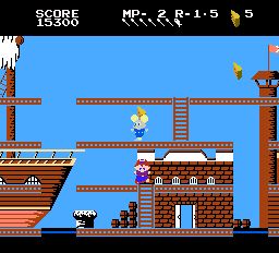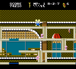 The original game relied on a few mechanics that needed to be mastered and exploited to get high scores, but there wasn’t much variety in the levels. This works fine for arcade games, but this was the era when console titles were getting longer and more involved, and needed to compete with the likes of Super Mario Bros. In the processes of expanding Mappy into a longer form game, they succeeded in adding more variety, but losing most of the tightly designed mechanics that made the original game so addicting. After all, unless you poorly mismanage your items, you’re never really trapped, and the level designs are so open that it’s much easier to navigate around enemies. Without these pressure, something ends up lost.