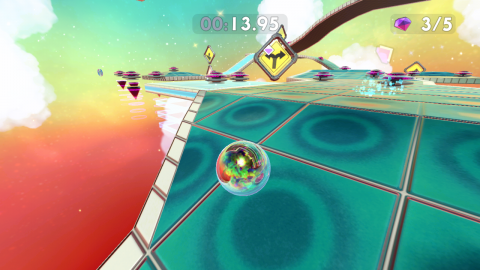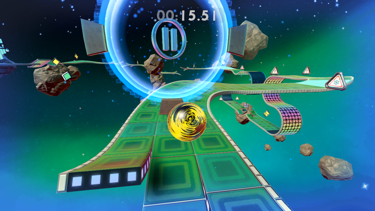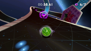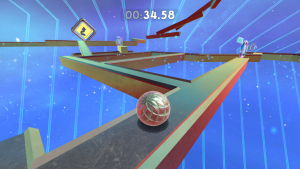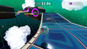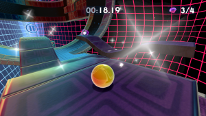It’s a simple game at first glance, controlling a marble that needs to roll and jump its way to the end of each stage. As you move around, you gain momentum that increases when you go down slopes or jump continually and decreases when you go up slopes. Using this momentum to achieve greater leaps and move around levels faster is a skill that will regularly be tested in the many levels you’ll visit.