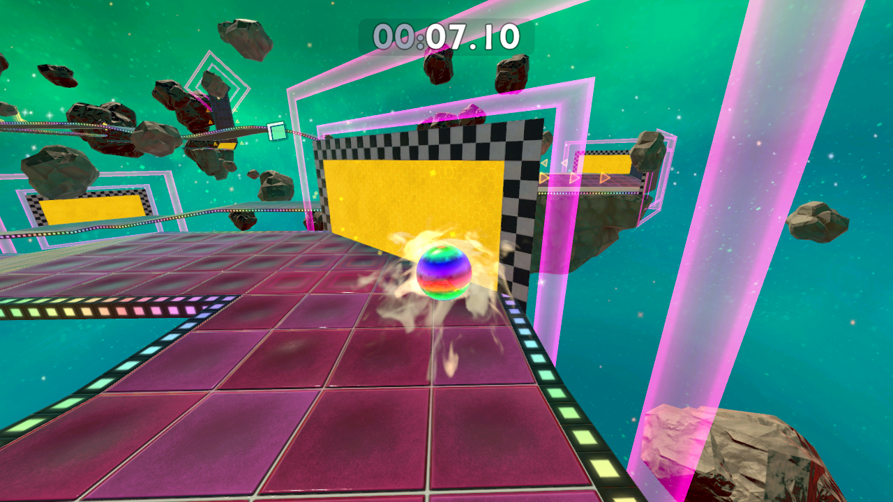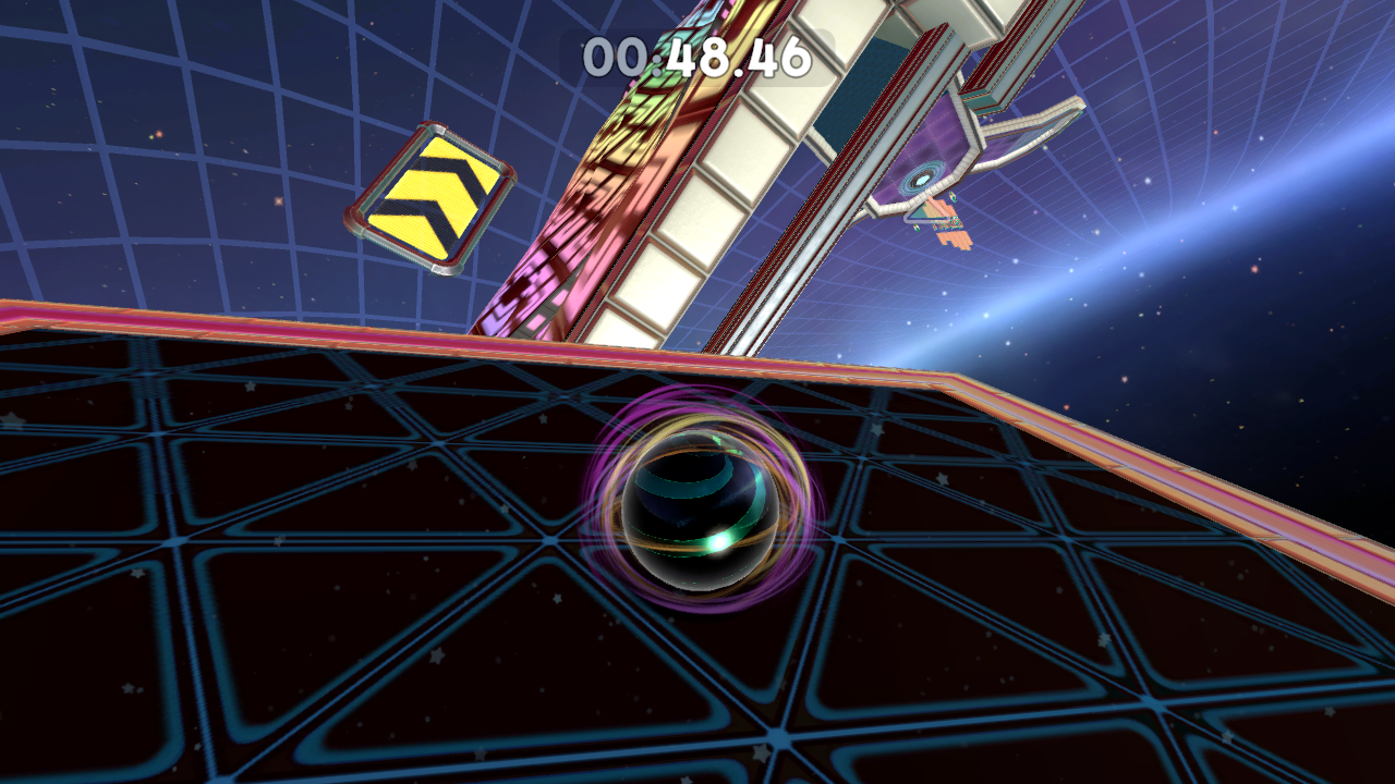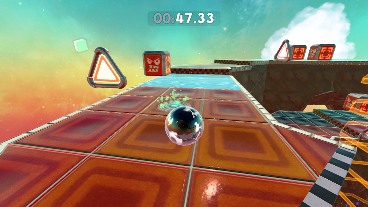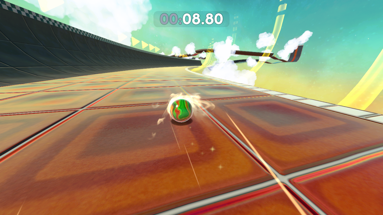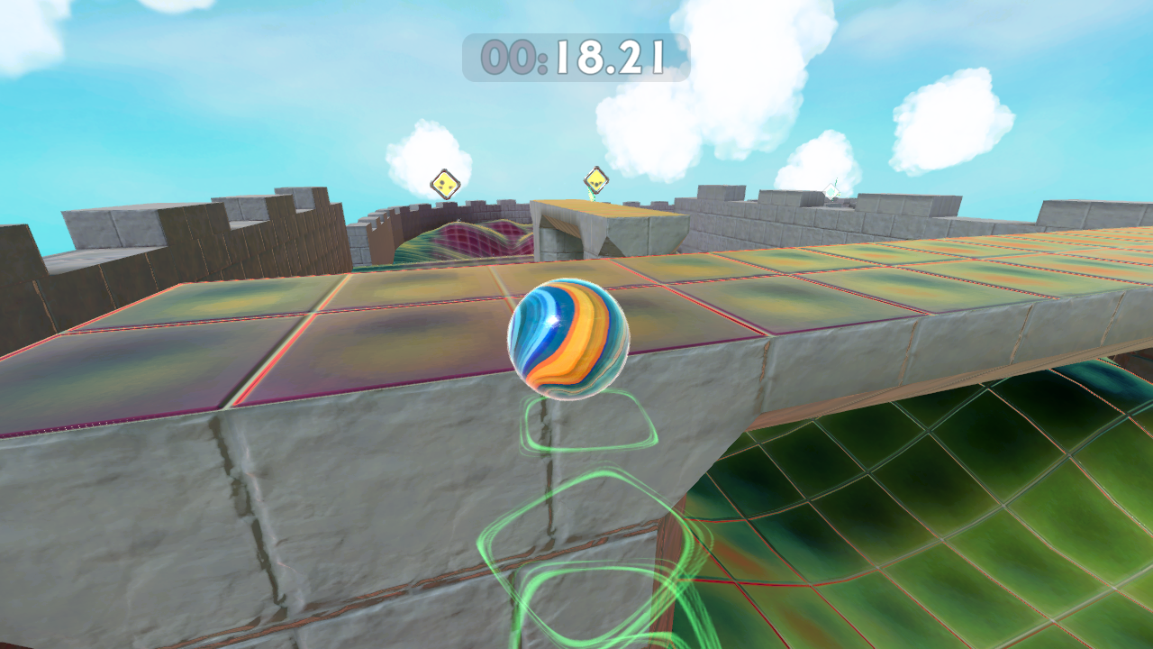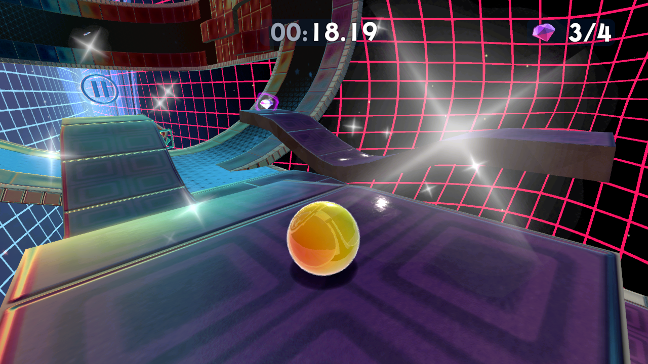 There’s a whole host of new marble skins to unlock by completing challenges or finding them in secret areas, along with coloured trails and cosmetic hats, glasses and the like which you can acquire with shards obtained from beating the levels. More shards are obtained as you beat stages at better times and completing more of them in a session, encouraging a kind of compulsive play that’s perhaps a bit too close to microtransaction-type systems (although there are no microtransactions).