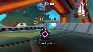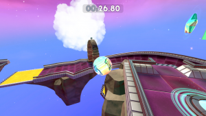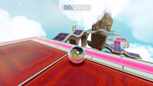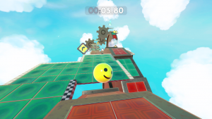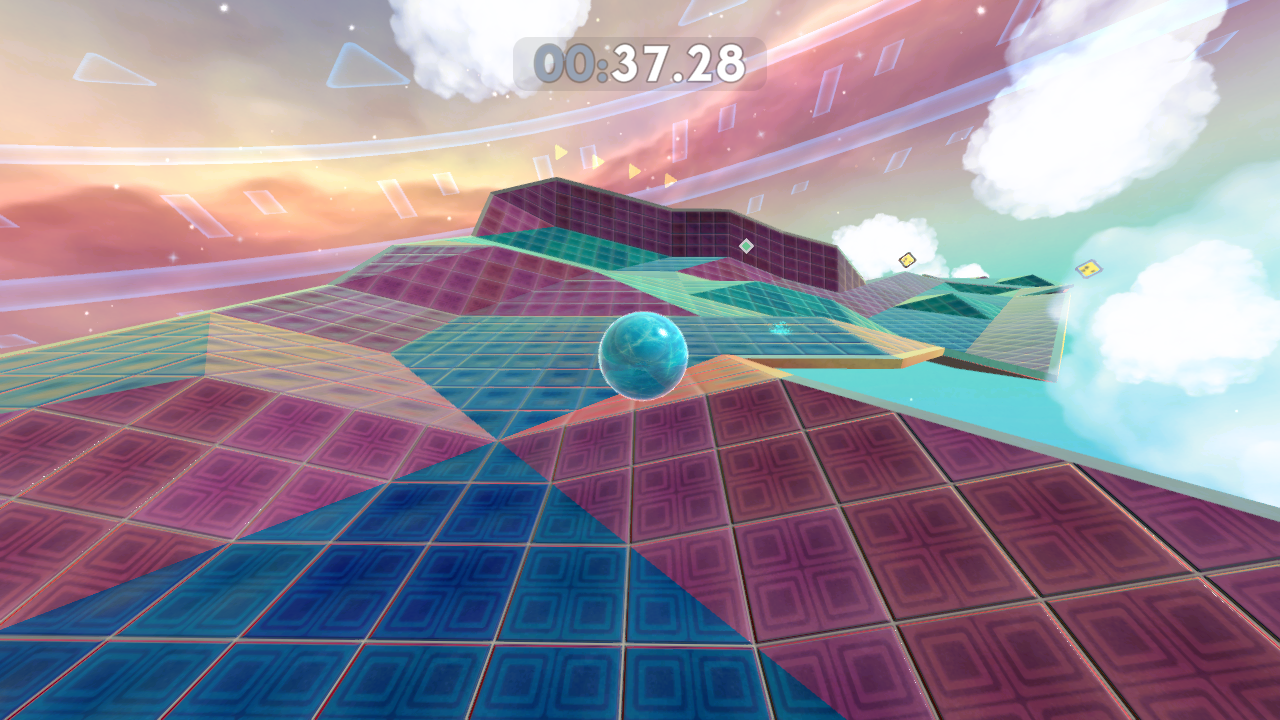 From obstacles such as bumpers and moving blocks that’ll fling you off, to icy and gravitational floors that effect your momentum, and single use power-ups like speed boosts, super jumps and glides, there’s plenty to help and hinder you. Levels themselves are quite varied too, featuring linear obstacle courses, open-ended areas containing gems you must collect to open the exit, breakneck downhill slopes where you can become uncontrollably fast, and more.