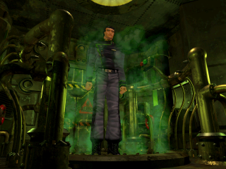 Voiced by relatively well-known Fenella Fielfing (the village announcer in The Prisoner!), she is a sentient infomesh, in charge of handling Vita-01’s massive network systems. As an A.I, MOOD only appears as a rainbow-like wall materializing sound-waves. In direct response to the grim events taking place in her base, she locked most of the blastdoors. Kenzo will have to get on her good side to open them. He can access her mainframe through a virtual representation of his own home, a traditional japanese house. MOOD is always teasing the characters and the player, especially during Game Over screens. For an unknown reason, she deeply resents Karnes.