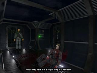 Otherwise, the survival-horror part is decent. Fighting sensations are a bit stiff: all the guns look and feel the same and enemies tend to be bullet-sponges. On the other hand, the atmosphere never lets go, with a brilliant use of sound, especially the alien presence emitting eerie sounds and twisted whispers through the entire base. Apart from the creepy main menu theme, music is barely noticeable, consisting of creepy ambient sounds. Corpses are scattered around the base, not only the undead kind. Hanged men and bullet-filled women usually have magnetic recorders on them, giving you a clearer understanding of the story. Martian Gothic: Unification is quite verbose, a bit too much sometimes. The final recordings usually last for two or three minutes each, and there are a lot of those.