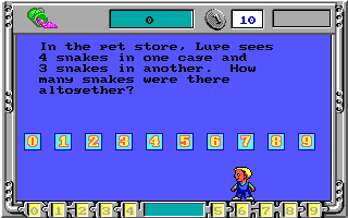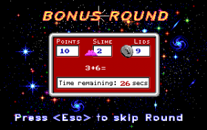 The graphics are a bit more detailed than Word Rescue, and the game has a slanted perspective to it, a little like the later Commander Keen games. There’s a lot of new level themes, like volcanoes and candy lands, which are appropriately colorful and cheery. The soundtrack isn’t quite as good as Word Rescue’s, but it’s still full of pleasant, bouncy Adlib music.
