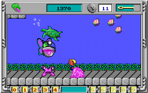 The levels are also a little bigger and longer than in Word Rescue, and there’s a few more secret passages, as well as warp signs that send you to another part of the level. Compared to most of the other games Apogee had published at the time, there’s still not many unique or surprising level elements, which is acceptable considering that it’s a game for young children.