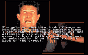 Mean Streets was published for the IBM PC, Commodore 64, Amiga and Atari ST. The Commodore version is obviously the weakest of the bunch, because it really can’t handle the digitized graphics at all. The IBM version has the best looking digitized graphics, but all of the sprites in third person sequences look completely ghastly. The Atari ST and Amiga versions are essentially identical, and while the digitized portraits aren’t quite as nice, the rest of the graphics are quite a bit better than the PC version.