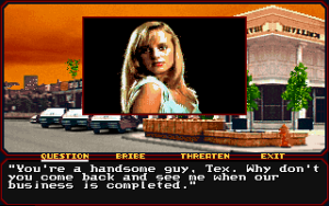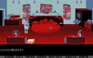 Whenever you break into a location, the game changes to a third-person view, where you (awkwardly) control Tex with the arrow keys. Whenever you walk next to something you can interact with, a menu pops up with a variety of commands. The whole thing is remarkably unintuitive. Once you begin to poke around, you’ll invariably set off a security alarm, which gives you limited time to search the premises and find some way to shut it off.