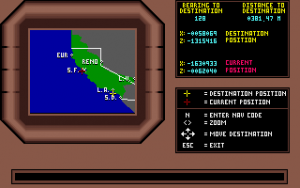 Mean Streets tries to combine several different genres into one, including a flight sim, an adventure game and an action game. When you begin, you’re given a vague explanation of your mission, as well as some tips to “read the manual” for all of your leads. In order to get from place to place, you hop in your hover car, which you must pilot from a first person perspective. There are a whole bunch of awkward controls to use – using the “+” and “-” keys to accelerate and decelerate, for example – but thankfully there’s a navigational computer, which lets you input specific codes to get to various places. All you need to do is type them in and set it on autopilot. Once you reach your destination, you still need to land, which is thankfully pretty easy considering it’s impossible to crash. Once you get out of your vehicle, you’ll either meet with the person in question and interrogate them, or break into the facility to investigate.
