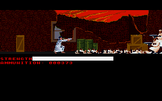 At a few points in the game, including bounty hunting missions to get more cash, you’ll enter side-scrolling action sequences. These are all remarkably simple, as you simply walk to the right, shoot your gun, and duck under enemy fire. For some reason, the enemies shatter like glass when killed, which shows some of the odd humor the series eventually became known for.