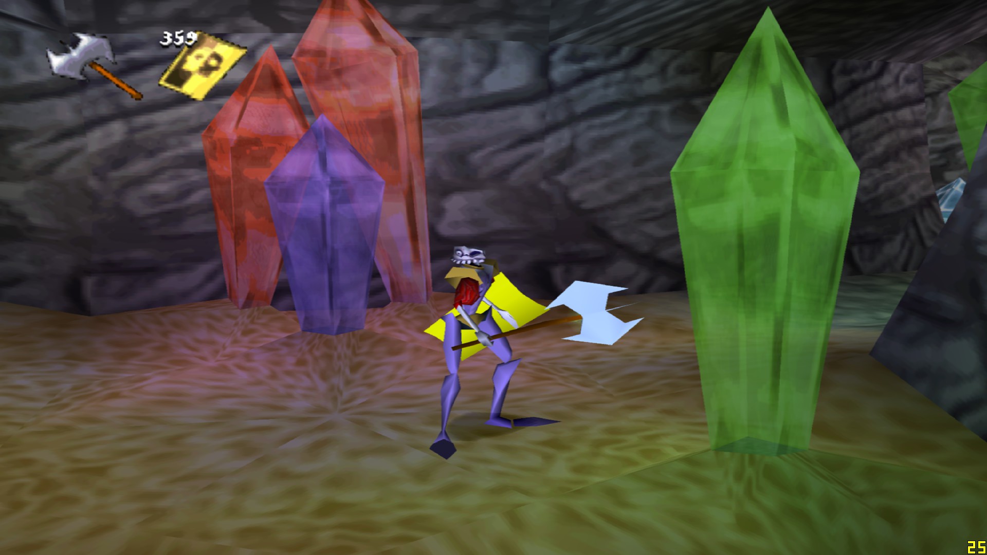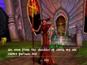 The game starts in the Fortesque crypt, with Dan coming to life and picking up his possessions before leaving the cemetery and starting to explore the land. Dan will traverse villages, haunted cornfields, ghostly pirate ships, swamps, crystal caves, sunken cities to get to Zarok’s hideout, fight against his personal army, his champion and then the evil warlock himself. Pushing the attack button with no weapons equipped will cause Dan to detach his own arm and start swinging it like a club, one of the several bits of humor that can be found throughout. Here the humor is understated and a bit dark, British indeed, but it will be ramped up in the sequels.