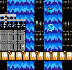 A rather uniquely designed, aquatic themed Robot Master burdened with a terribly repetitive attack pattern. Make a Water Wave plume from the floor, fire a harpoon, then jump. Repeat until blown up by Blue Bomber. You have to wonder if the winners of the design contests feel cheapened if his or her creation turns out to be so lame in the final product. [Weakness: Charge Kick]
