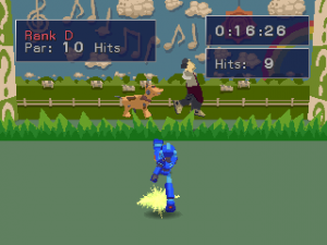 The other change was the removal of potential animal abuse. Mega Man could shoot down birds and kick cats around, which has a negative effect on his reputation as will slowly turn his armor blacker with repeated assault. This change even removes a choice in saving Tron from Paprika the dog when she’s chased up a street light pole. You could talk to the dog and be friendly to calm it down, but in Japan you could also punt Paprika away, which would make him fear you for the rest of the game. Naturally, it really puts you full-on the evil side using the latter method, a heinous act almost on par with running off with the bag of stolen money by the game’s standards. The only animals you’re allowed to injure in the Overseas editions are the wild dogs in the Old City, since it could count as self-defense. However, you’re only allowing to kick them once to pacify them, while originally you could be an asshole and boot them repeatedly while they’re down.